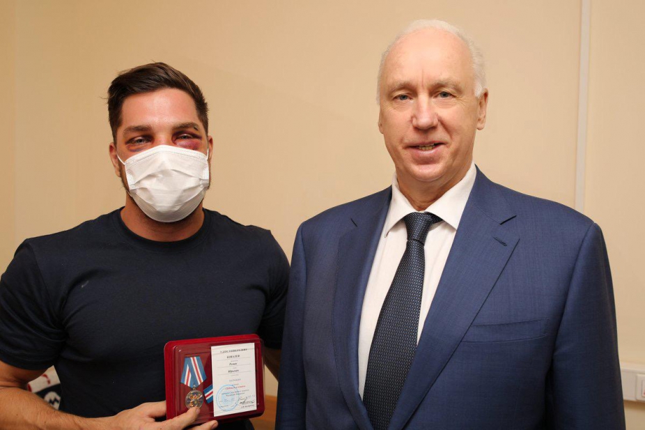От всей души вручаю вам награду. Хочу отметить, что благодаря вам и вашим действиям удалось задержать подозреваемых. Желаю вам скорейшего выздоровления, а синяки заживут, шрамы украшают мужчин, — сказал Бастрыкин.