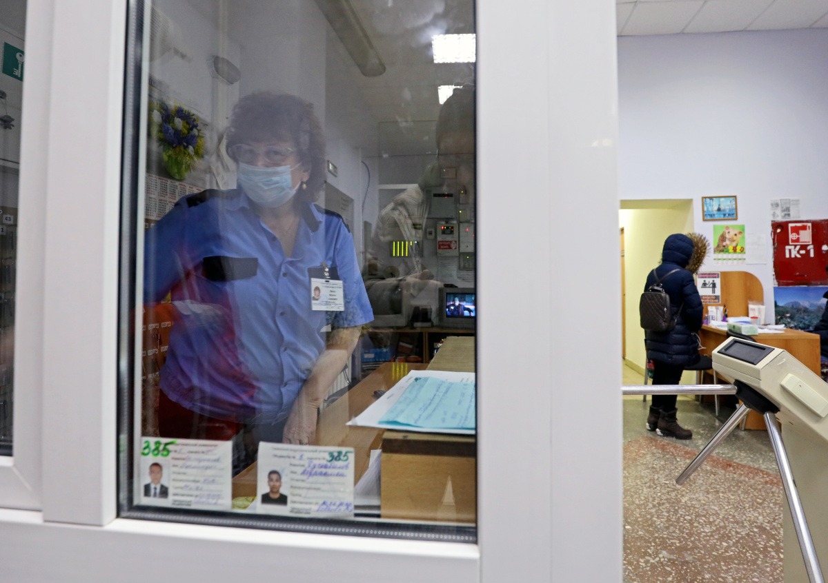 Комендант на проходной 5-го корпуса общежития Тюменского индустриального университета, где проживала китайская студентка, у которой был диагностирован коронавирус Комендант на проходной 5-го корпуса общежития Тюменского индустриального университета, где проживала китайская студентка, у которой был диагностирован коронавирус Фото: Максим Слуцкий/ТАСС