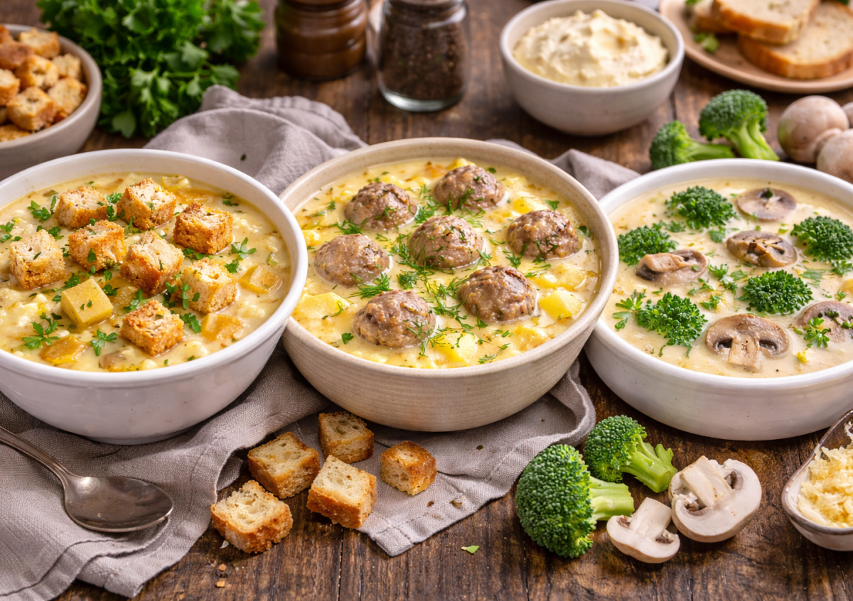 Варю и не могу остановиться: 3 классных супа без варки бульона — на основе плавленого сыра, с гренками, фрикадельками и овощами