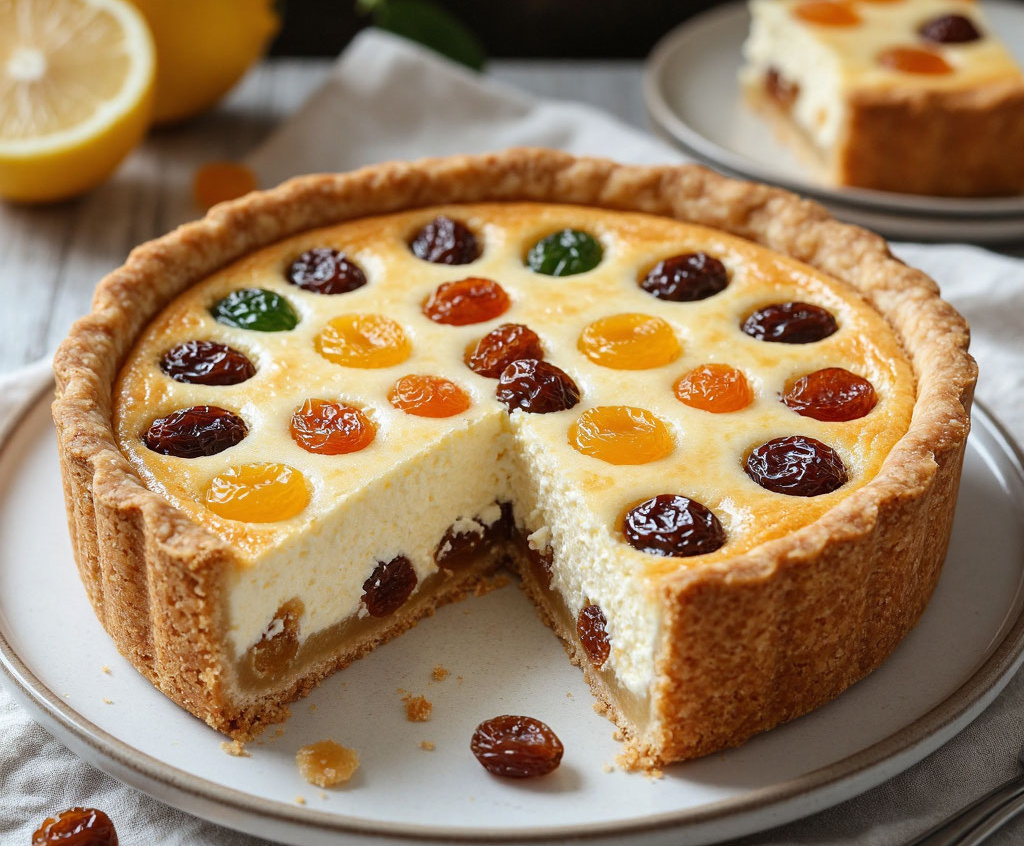 Этот итальянский пирог — настоящая ода сытному и вкусному началу дня. В отличие от воздушных десертов, «Торта-ди-ричотта» обладает благородной плотной, почти кремовой текстурой, которая прекрасно насыщает. Аромат ванили и лимонной цедры, сладость изюма и яркие цукаты в каждом кусочке создают солнечное, праздничное настроение. Такой пирог не требует сиюминутной подачи — он становится еще лучше на следующий день, что делает его идеальным готовым завтраком для всей семьи, который хранит вкус настоящей Италии.