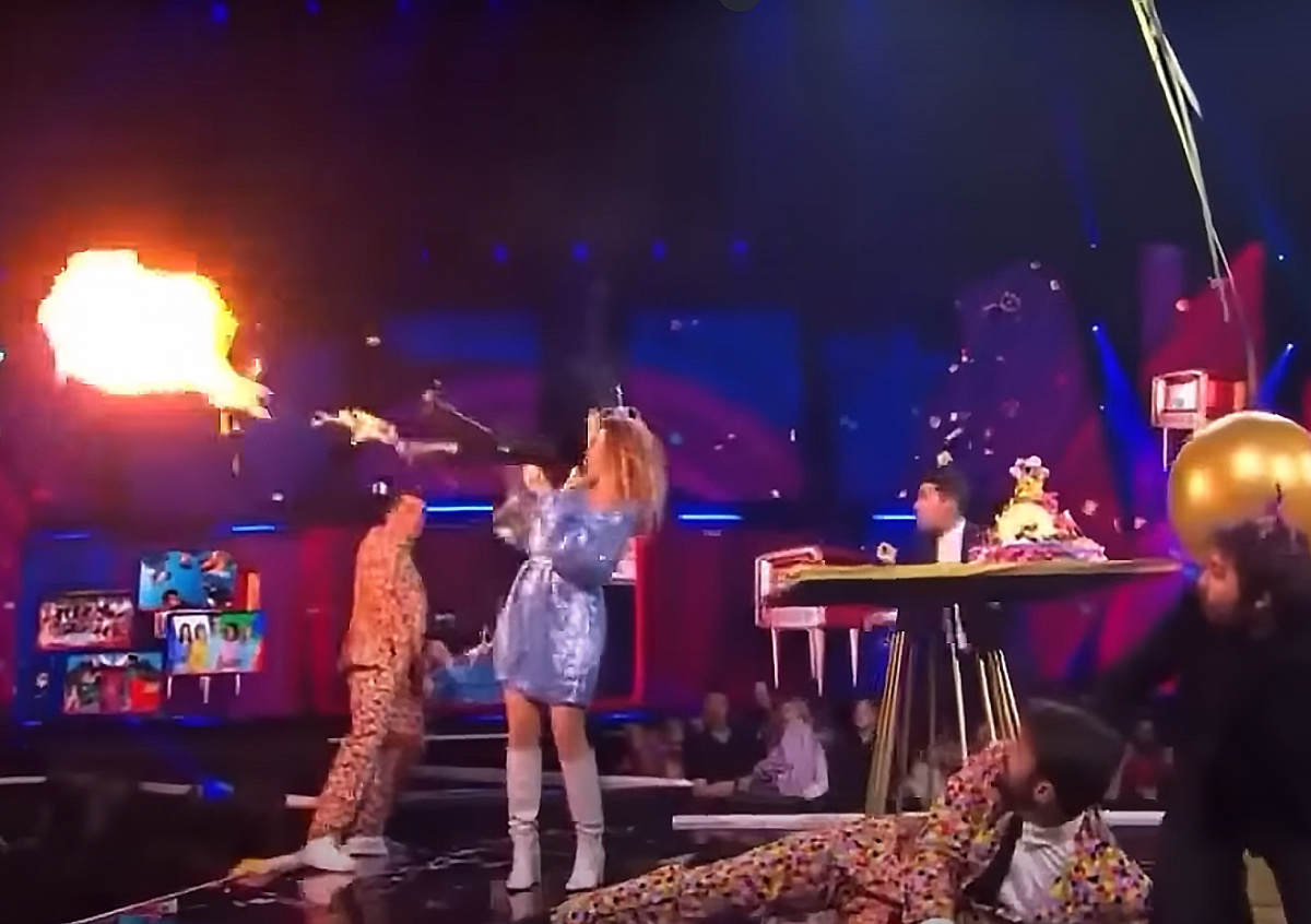Ведущая шоу выстрелила в саму себя из огнемета в прямом эфире