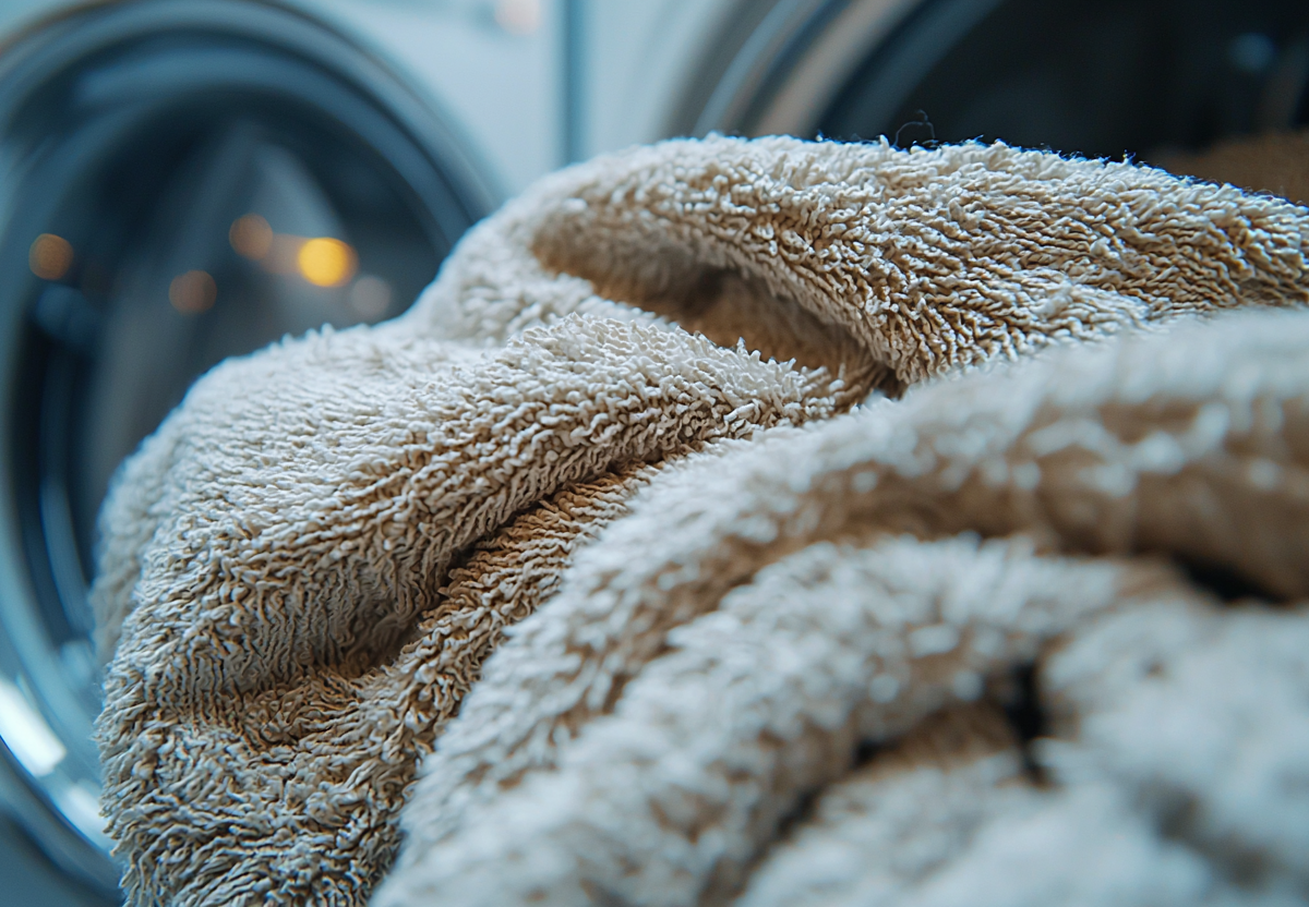 • Специальные шарики для стирки — бросьте 2–3 теннисных мячика в сушилку. Они взбивают ворс, предотвращая жесткость.