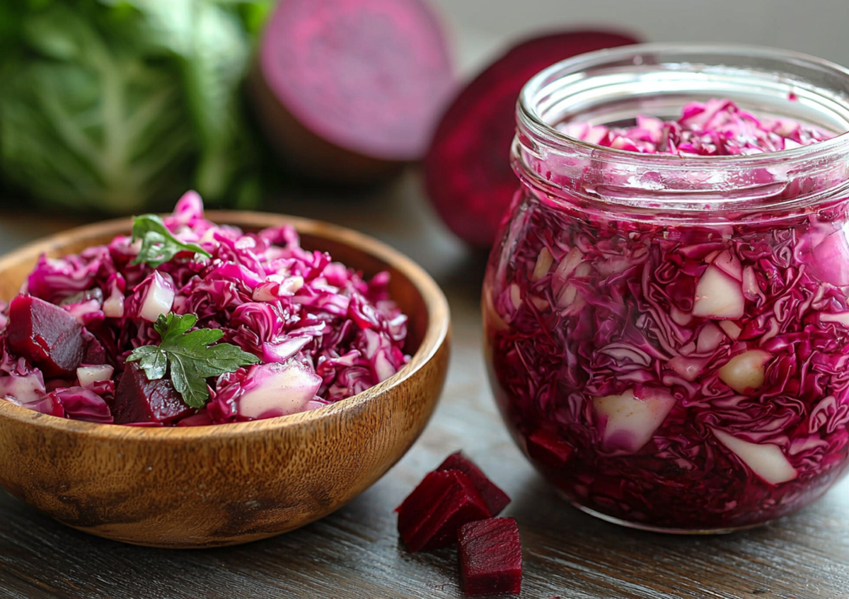 Маринованная капуста со свеклой — кладезь витаминов. Этот зимний салат — источник витамина С. Кроме того, он оказывает благотворное влияние на микрофлору кишечника и центральную нервную систему.