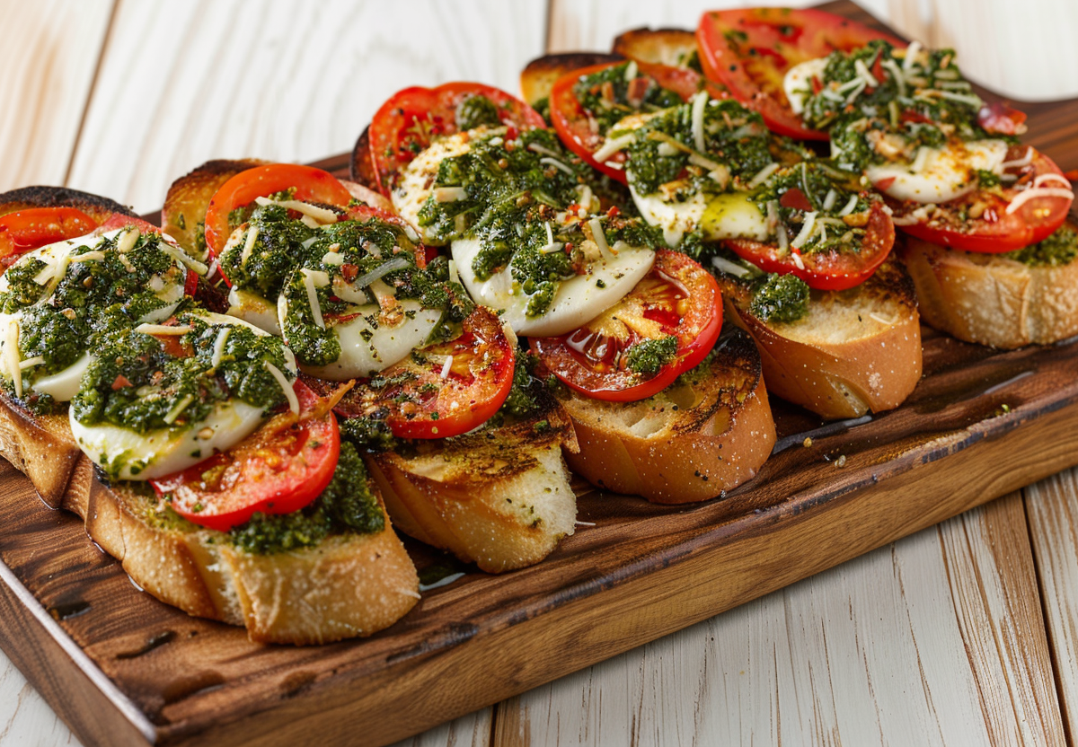 Предлагаем вам приготовить восхитительную закуску, которая не требует много времени и усилий. Брускетта с моцареллой станет отличным вариантом для легкого перекуса перед сном, когда не хочется переедать. Этот рецепт также можно включить в новогоднее меню.