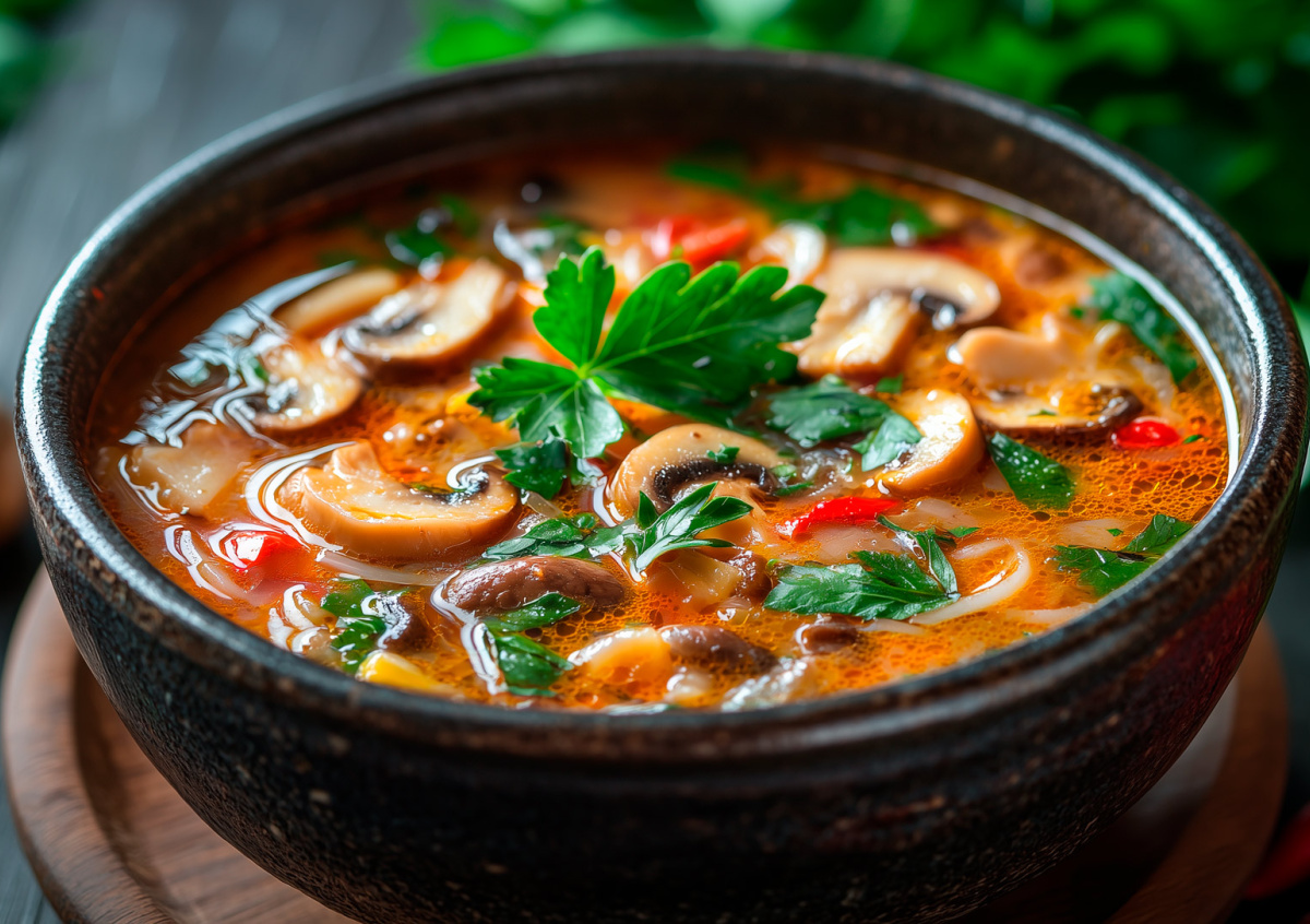 Это блюдо стало настоящей легендой. Интересно, что готовить его не так сложно, как может показаться на первый взгляд. Наслаждаемся наваристым супом том-ям с шампиньонами на бульоне из морепродуктов в домашних условиях.