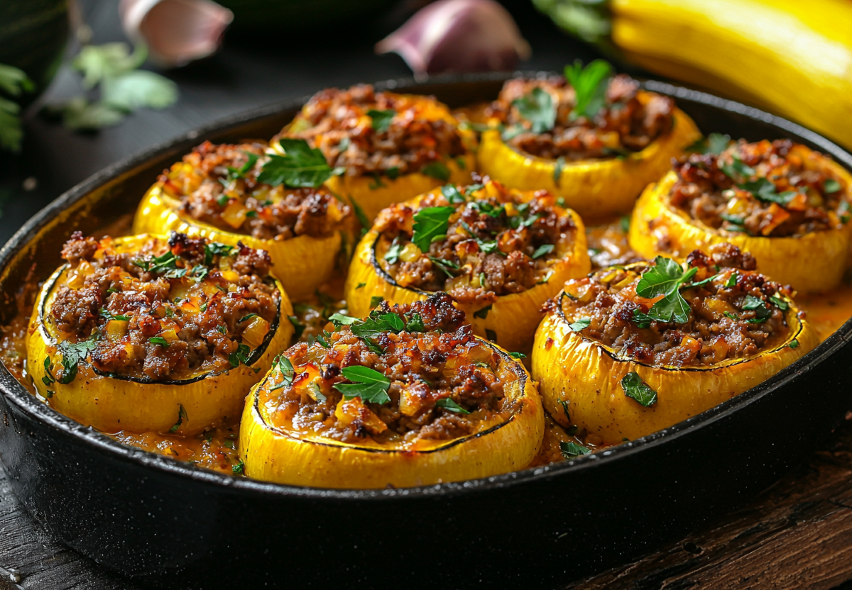 Рецепт: возьмите 2 молодых кабачка, нарежьте кольцами толщиной 3–5 см и удалите сердцевину ложкой. Смешайте 300 г фарша с луком, 1 яйцом, 50 г риса, солью и специями. Наполните кабачковые бочонки фаршем, выложите в форму. Сверху полейте соусом из 200 г сметаны с 2 зубчиками чеснока и посыпьте сыром. Запекайте 35 минут при 190 °C до золотистой корочки.