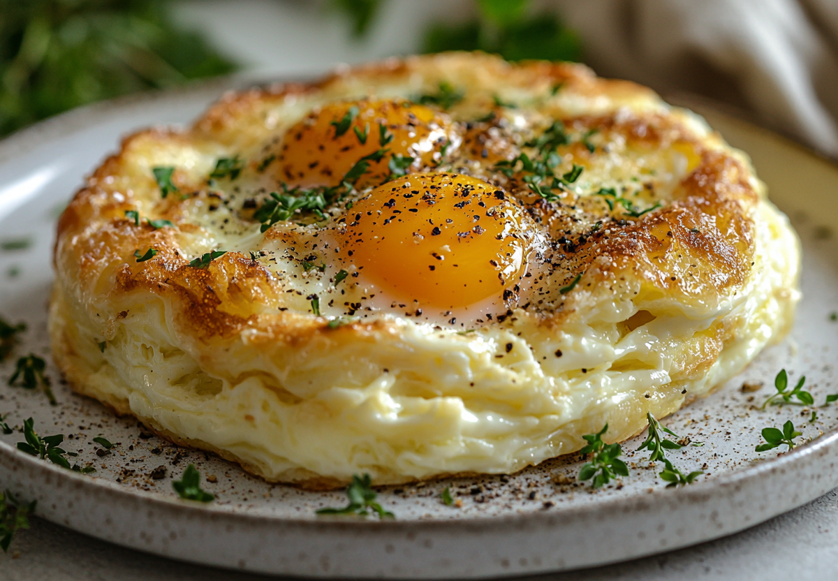 Способ приготовления: аккуратно отделите белки от желтков, стараясь не повредить желтки. Белки взбейте с щепоткой соли в крепкую, устойчивую пену (до пиков). Духовку разогрейте до 200 °C. Противень застелите пергаментом. Выложите взбитые белки на пергамент в виде двух небольших «гнезд» или холмиков, делая в центре каждого небольшое углубление ложкой. Запекайте белки в духовке 3–4 минуты, пока они слегка не подрумянятся и не схватятся. Достаньте противень, аккуратно выложите в углубления желтки, посолите и поперчите их, при желании посыпьте тертым сыром. Верните в духовку еще на 2–3 минуты, пока желтки не прогреются, но останутся жидкими внутри. Подавайте, посыпав свежей зеленью, с тостами.