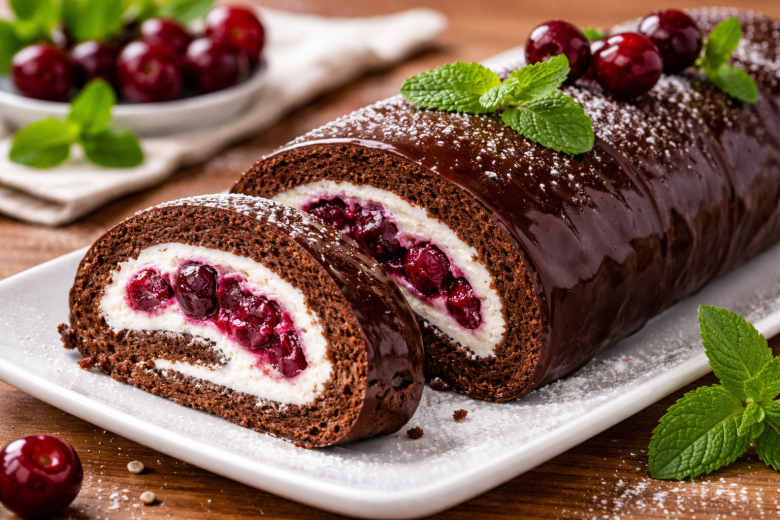 Этот десерт — настоящая находка, когда хочется чего-то сладкого, красивого и при этом не тратить полдня на кухне. Нежный шоколадный бисквит, сочная вишневая начинка и воздушный крем создают идеальное сочетание, от которого невозможно оторваться.