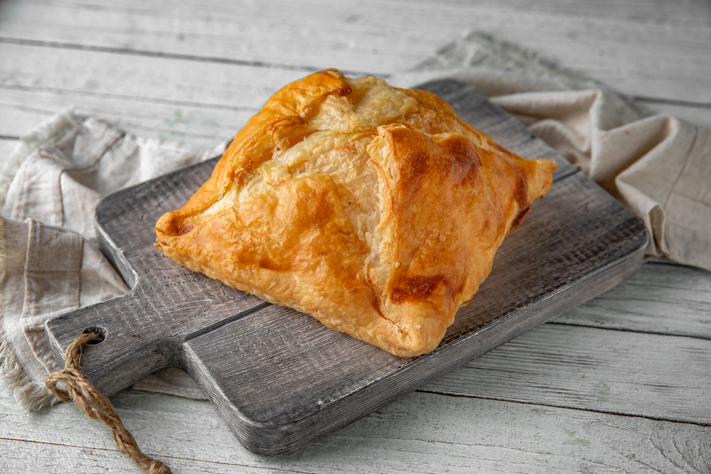 Слоеное тесто разрезают на квадраты или треугольники, наполняют начинкой и формируют пирожки. Важная деталь подачи — горячий мясной бульон, который можно добавлять внутрь пирожков для сочности. Это придает блюду особый шарм, а мясной вкус становится более ярким.