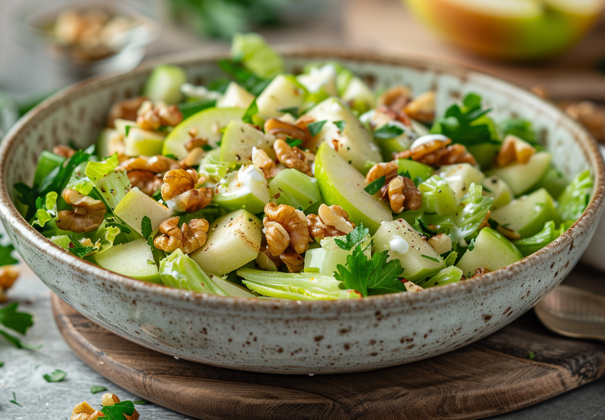 Этот хрустящий салат с сельдереем и яблоком — идеальный вариант для легкого перекуса или полезного дополнения к основному блюду. Его яркий вкус и насыщенная текстура понравятся даже тем, кто не любит овощные салаты. Для приготовления понадобится 2 стебля сельдерея, 1 крупное яблоко (лучше кисло-сладких сортов), горсть грецких орехов и 3 столовые ложки натурального йогурта.