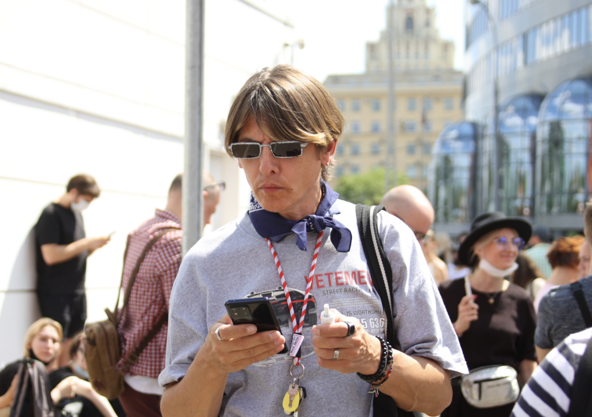 Поддержать Серебренникова пришли рэпер Oxxxymiron, актриса Юлия Ауг, Рома Зверь и артисты «Гоголь-центра». Полицейские попросили их не закрывать проход для людей и держать социальную дистанцию.