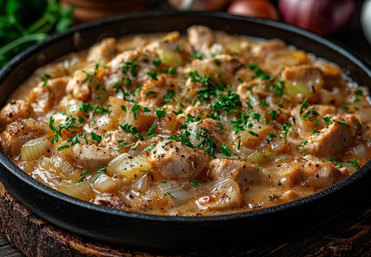 Вместо гуляша готовлю курицу по-строгановски в сметане. С этим рецептом вкусный обед гарантирован. Блюдо сочетает нежное куриное филе, пикантные шампиньоны, сладковатый лук и богатый, бархатистый сметанный соус.