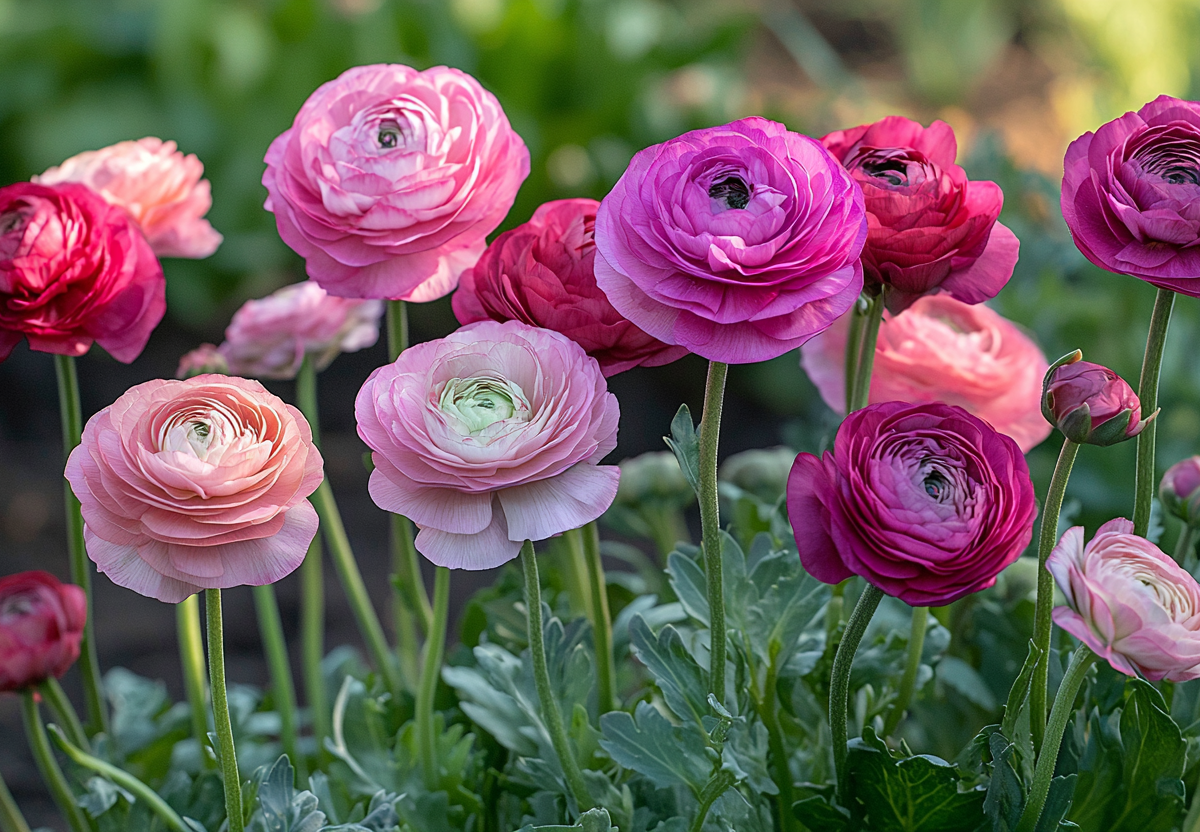 Если хочется добавить в сад изысканности и свежих красок, обратите внимание на ранункулюс — многолетник с невероятно пышными цветами, напоминающими миниатюрные розы. В отличие от привычных петуний, он поражает разнообразием оттенков — от нежных пастельных до насыщенных пурпурных и солнечно-желтых.