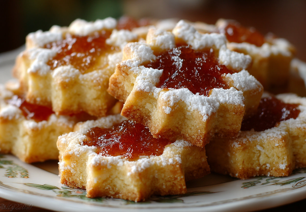 Получается обалденная вкуснятина: рассыпчатое, нежное песочное тесто, а внутри — сладкая, чуть кисловатая начинка из повидла, которая делает каждый кусочек сочным и ароматным.