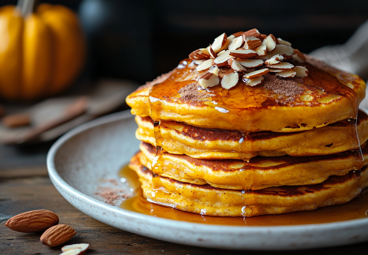 Для приготовления этих солнечных оладий мне понадобится: свежее яйцо (1 шт.), тыквенное пюре (100 г), мягкий творог (100 г), рисовая мука (40 г), корица, мускатный орех, куркума и имбирь по вкусу, а также растительное масло для жарки. Для подачи я использую мягкий творог, рубленый миндаль, сироп агавы или кленовый сироп, дополнительную щепотку корицы и иногда кусочки запеченной тыквы для украшения.