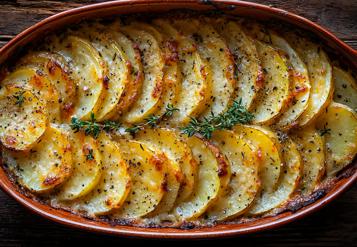 Вкус получается сливочным и очень нежным: картофель пропитывается молоком и маслом, становясь мягким, а хрустящая сырная шапка добавляет пикантности. Это идеальный гарнир к любому мясу, курице или рыбе.