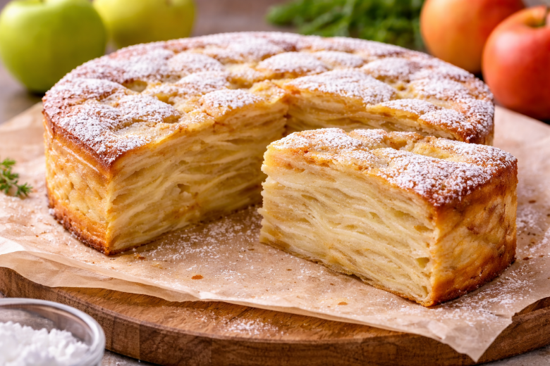 Обычная шарлотка уже не кажется такой интересной. В этом пироге «Невидимка» почти не чувствуется тесто, потому что основа — это сочные яблоки.