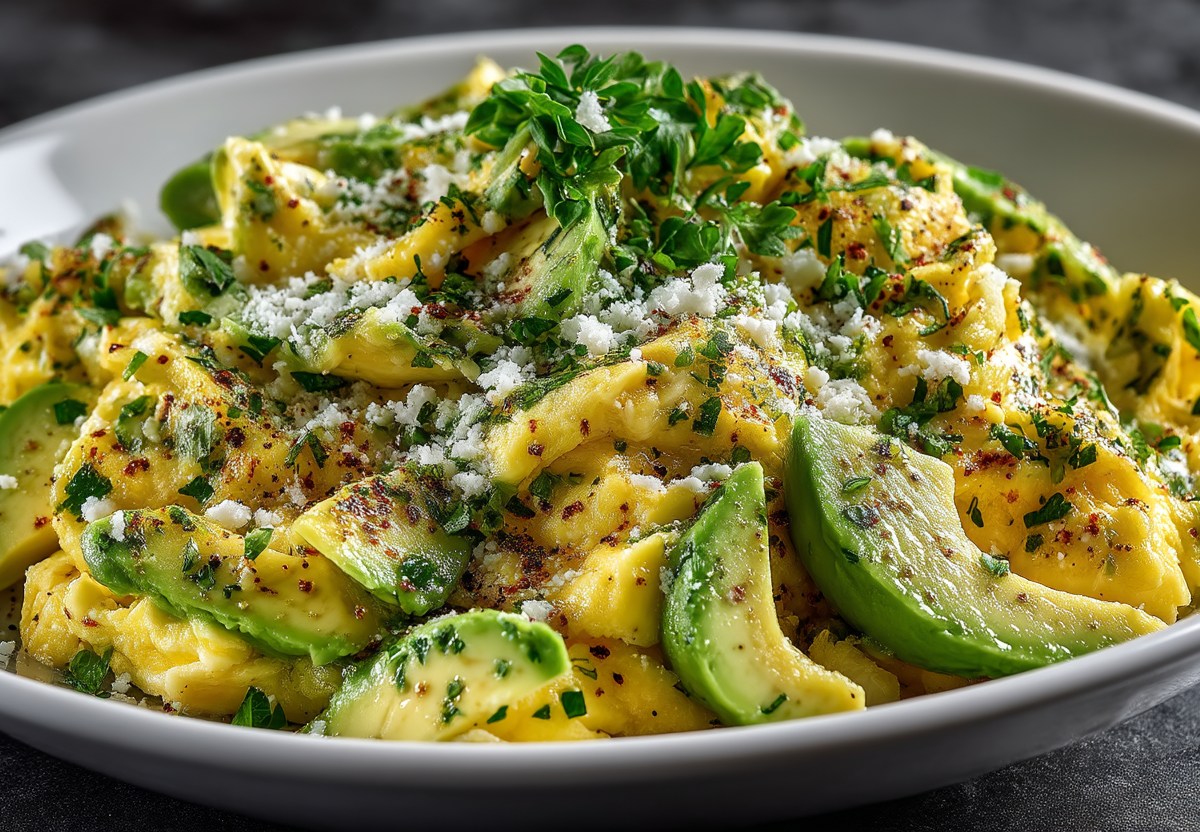 Хотите завтрак, который хочется не только есть, но и фотографировать? Эта яичница — зеленая, с кремовыми кусочками авокадо, тягучим сыром и яркой зеленью. Готовится за 10 минут, а выглядит на миллион. И вкусно, и красиво, и полезно.