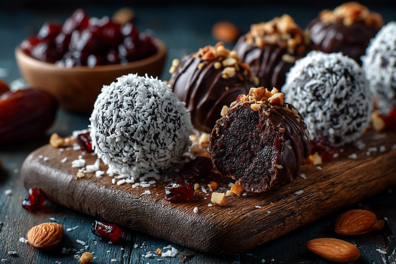 Финики очищаю от косточек, если нужно. Курагу и финики промываю, заливаю горячей кипяченой водой и оставляю на 20 минут. Затем воду сливаю, но не полностью — оставляю примерно 50 мл. Перекладываю сухофрукты в блендер, добавляю оставленную воду и измельчаю до однородной пастообразной массы. Перекладываю в миску, добавляю кокосовую стружку и тщательно перемешиваю. Из полученной массы влажными руками формирую небольшие круглые конфеты. Выкладываю их на пергамент и убираю в морозилку на 30 минут. Горький шоколад растапливаю на водяной бане или в микроволновке. Достаю конфеты из морозилки, окунаю каждую в растопленный шоколад или поливаю сверху. Выкладываю обратно на пергамент и снова убираю в холодильник (или морозилку) на 20 минут, чтобы шоколад застыл. Храню в закрытом контейнере в холодильнике.