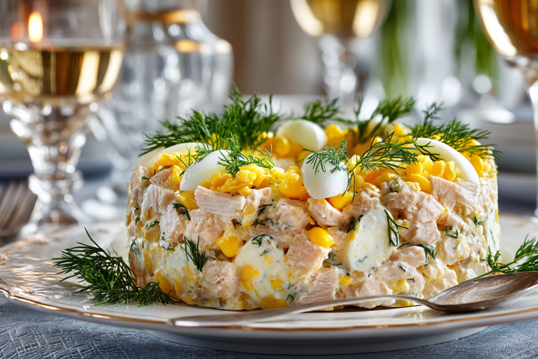 Все гадают, из чего сделан этот салат, а я просто объединяю хвостик колбасного сыра с кукурузой и курицей. В нем идеально все — легкое приготовление и многогранный вкус. Салат получается очень сочным и питательным.