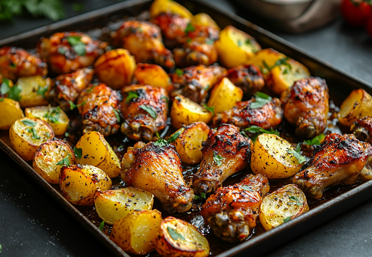 Готовим хрустящие куриные крылышки с картошкой в духовке. Этот рецепт — идеальный вариант для сытного ужина или дружеских посиделок. Крылышки получаются сочными внутри, с аппетитной карамельной глазурью, а картофель пропитывается ароматным соусом и запекается до золотистой хрустящей корочки.