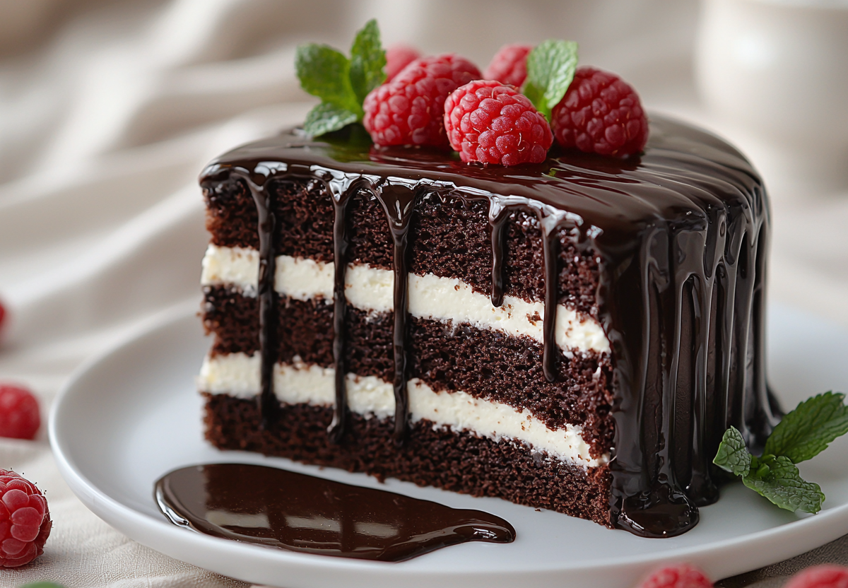 2. Для крема взбейте творог, творожный сыр и подсластитель до гладкости. Соберите торт, чередуя коржи и крем. Для красивого вида используйте кондитерский мешок. Разогрейте молоко или сливки, залейте шоколад, дайте постоять минуту, перемешайте и полейте торт.