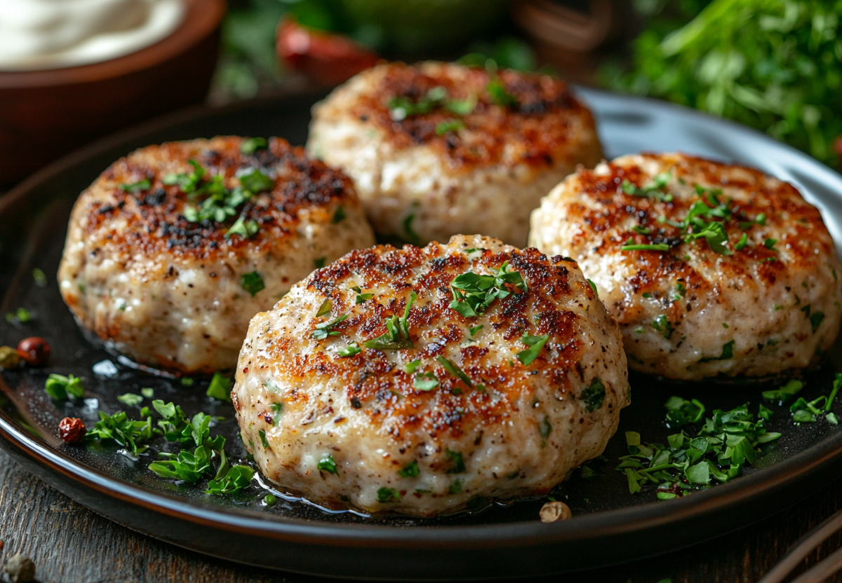 Рецепт: лук и чеснок мелко порубите или натрите. В глубокой миске соедините фарш, лук, чеснок, яйцо и специи. Хорошо перемешайте. Влейте кефир и снова тщательно вымесите фарш до однородности и липкости. Добавьте панировочные сухари (или отжатый хлеб) и еще раз перемешайте. Накройте миску пленкой и уберите фарш в холодильник минимум на 1 час. После этого сформируйте котлеты, обваляйте их в панировочных сухарях для хрустящей корочки и обжарьте на разогретой сковороде с маслом на среднем огне по 5–7 минут с каждой стороны до золотистого цвета. Затем убавьте огонь, накройте крышкой и готовьте еще 5–7 минут.