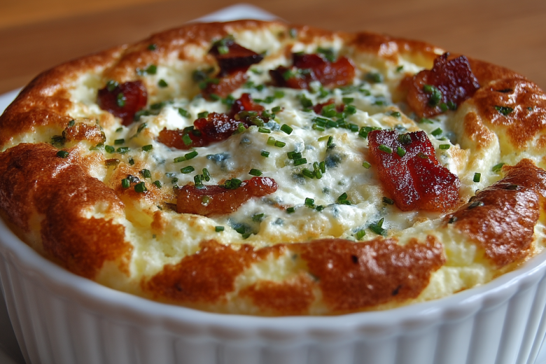 Это гениально простое и невероятно вкусное блюдо, идеальное для обеда или ужина. Получается обалденная вкуснятина: нежная, воздушная текстура, похожая на облако, с хрустящими кусочками бекона, расплавленным сыром и ароматом зелёного лука, которая буквально тает во рту.