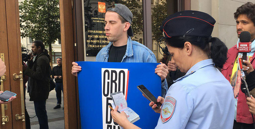 18 сентября у здания администрации президента в Москве проходят одиночные пикеты в поддержку актёра Павла Устинова. Его задержали на акции протеста 3 августа и впоследствии приговорили к трём с половиной годам колонии общего режима. Следствие считает, что Павел оказывал сопротивление при задержании, что привело к вывиху плеча сотрудника Росгвардии. Корреспондент News.ru пообщался с участниками одиночных пикетов и узнал, почему они вышли поддержать Павла Устинова.