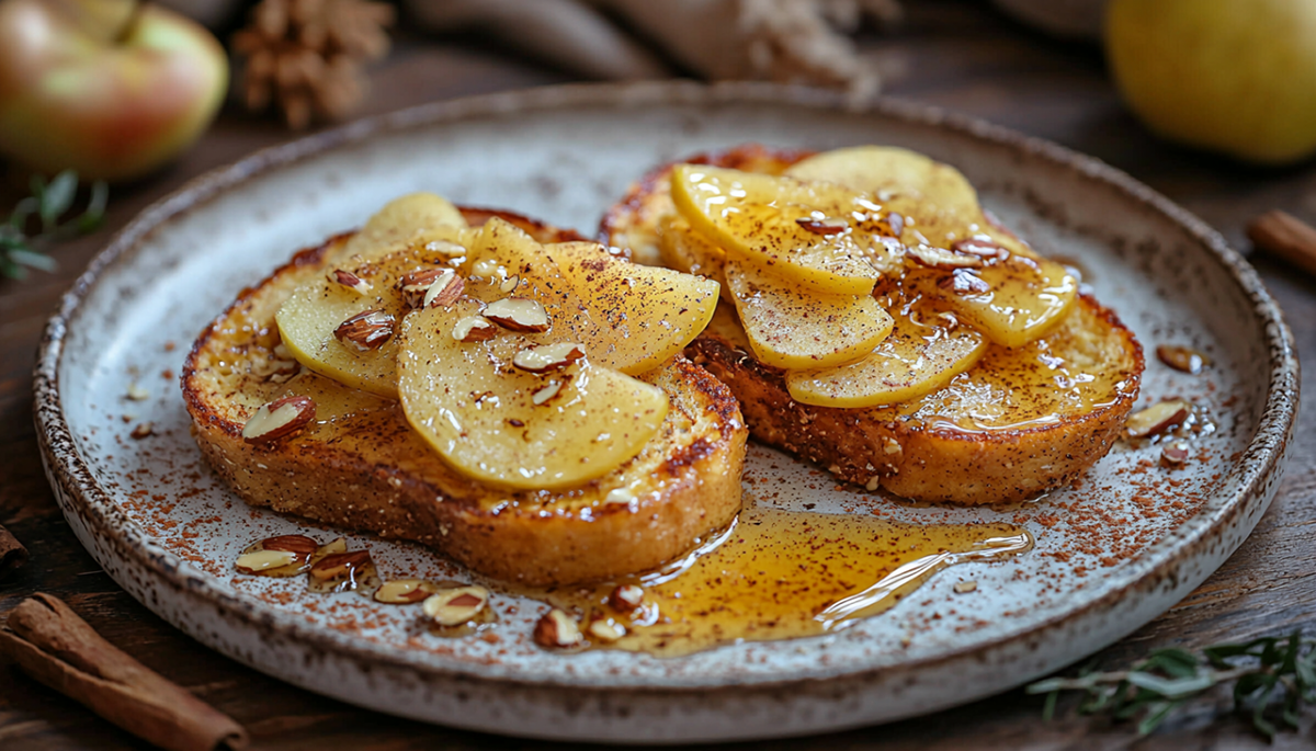 Готовим яблочные гренки с миндальными лепестками — идеальный завтрак с французским шармом! Этот восхитительный завтрак сочетает нежность французских тостов с ароматом корицы, сладостью яблок и хрустом миндаля. Для приготовления вам понадобится багет или белый хлеб вчерашней выпечки — он идеально впитывает яичную смесь, но сохраняет форму.