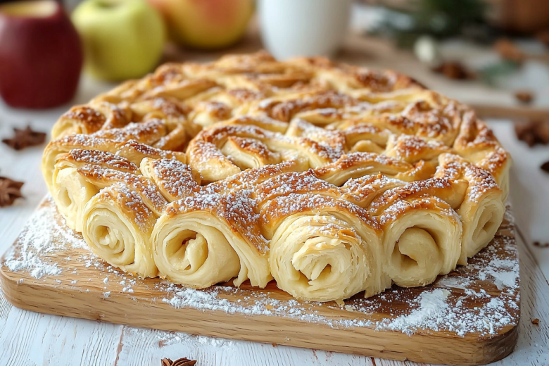 Если ты любишь яблочную выпечку, но обычная шарлотка уже приелась, этот рецепт станет настоящим откровением! Этот пирог я называю «рожки» — забавные завернутые уголки с сочной начинкой, хрустящие снаружи и нежные внутри. Секрет в том, что каждое яблочко запекается в собственном «кармашке» из теста, не растекаясь и сохраняя весь свой сок. Это одновременно и красиво, и практично — порционные кусочки идеально отламываются, а тесто пропитывается фруктовым ароматом. И да, он действительно готовится проще, чем традиционная шарлотка!