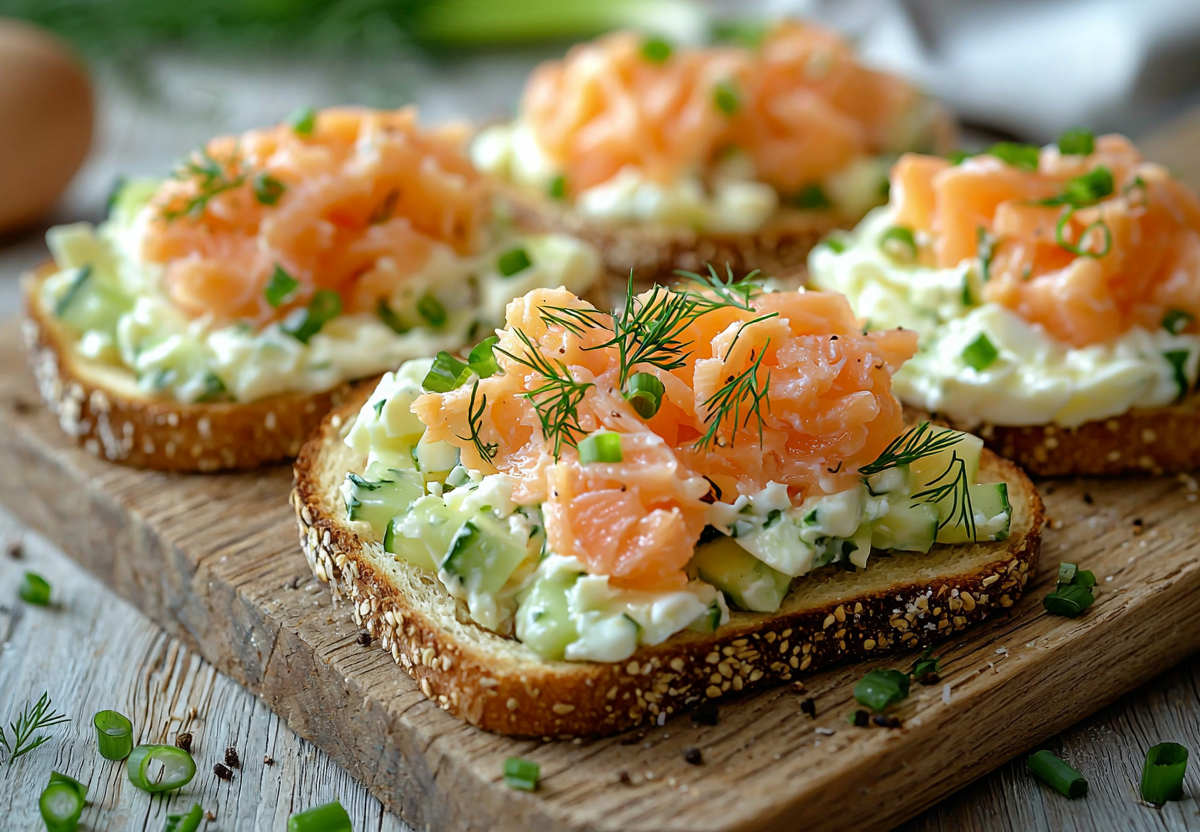 Яичные тосты с огурцом и рыбкой! Невероятный завтрак за 20 минут! Эти изысканные тосты — идеальный вариант для питательного завтрака или легкого перекуса. Нежнейший яичный салат с хрустящим огурцом и укропом в тандеме с ломтиками слабосоленой семги создают неповторимую гармонию вкуса. Простота приготовления и ресторанный вид гарантированы!