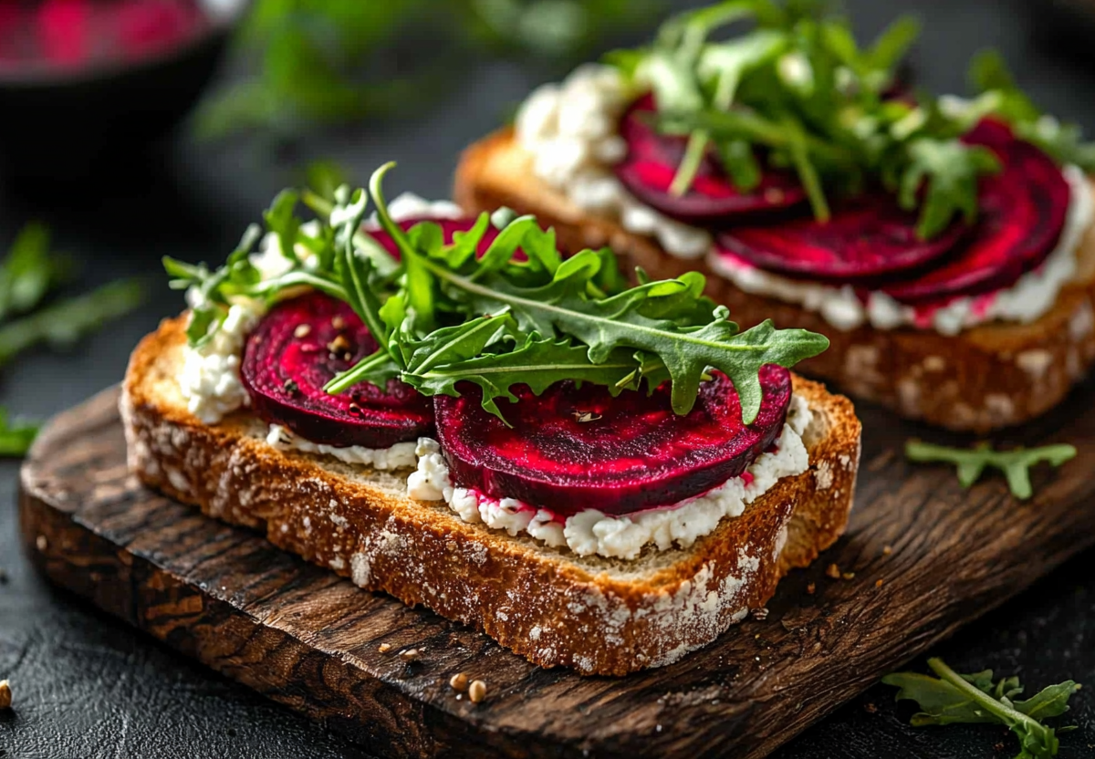 Этот сэндвич — мастерский баланс. Сладость меда и свеклы, легкая кислинка уксуса, сливочность сыра, острота руколы и насыщенность поджаренного хлеба. Каждый компонент важен, а вместе они создают сочный, сложный и очень гармоничный вкус.