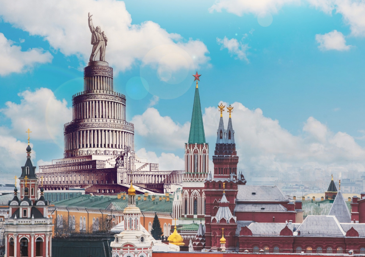 Это циклопическое здание для проведения сессий Верховного Совета СССР и массовых демонстраций можно считать «Вавилонской башней» сталинской эпохи, хотя изначально о таком проекте большевики задумались еще при жизни Владимира Ленина в начале 1920-х годов. Дворец Советов задумывался как «эмблема грядущего могущества, торжества коммунизма». Нарком просвещения Анатолий Луначарский говорил, что изначально такое здание задумывалось, «чтобы дать Москве — красному центру мира — некоторое завершающее здание, зримый архитектурный центр».