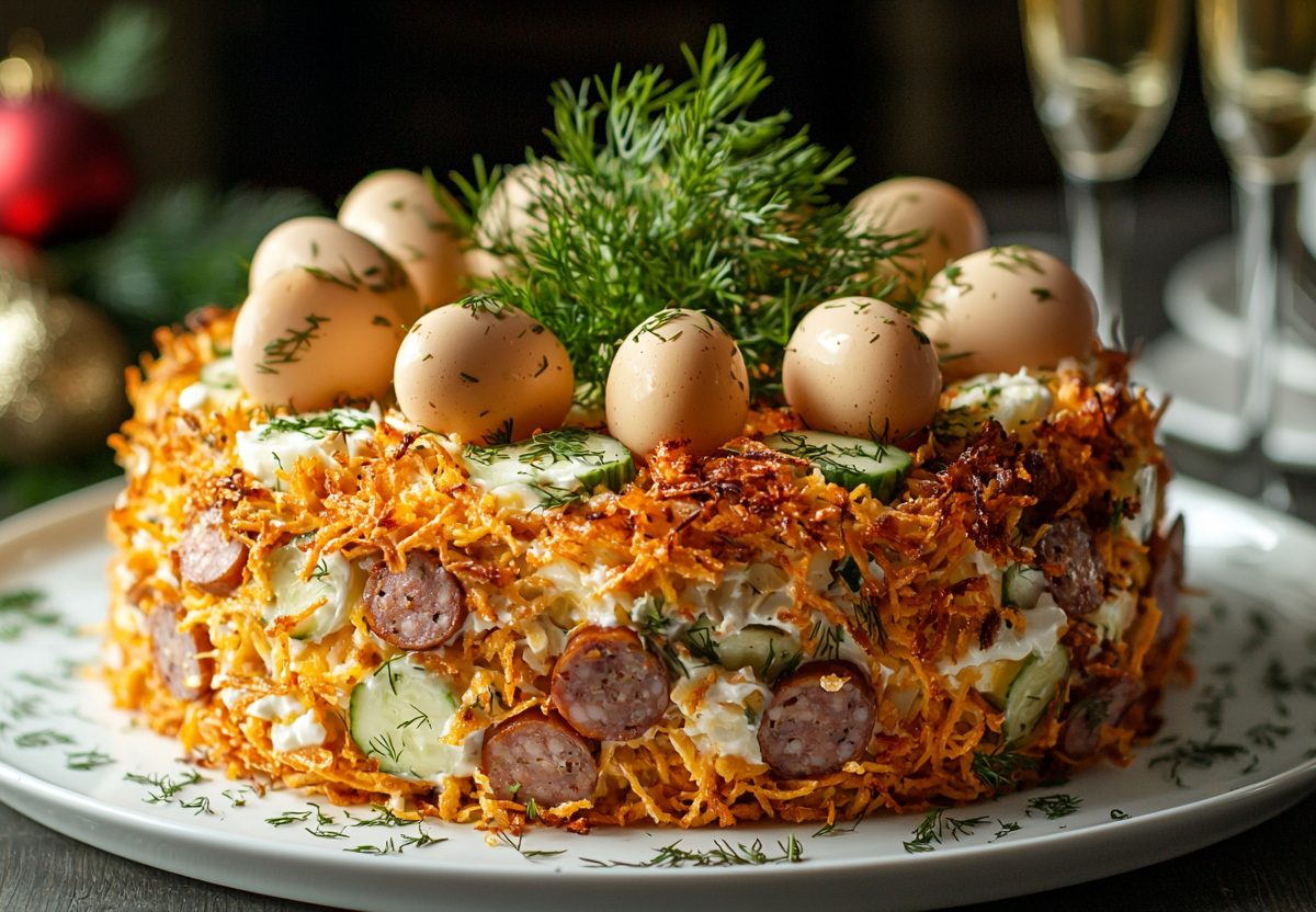 Чтобы задобрить символ 2026 года — Огненную Лошадь — и привлечь в дом благополучие, приготовьте символичный салат «Стог сена». Он отлично впишется в новогодний стол!