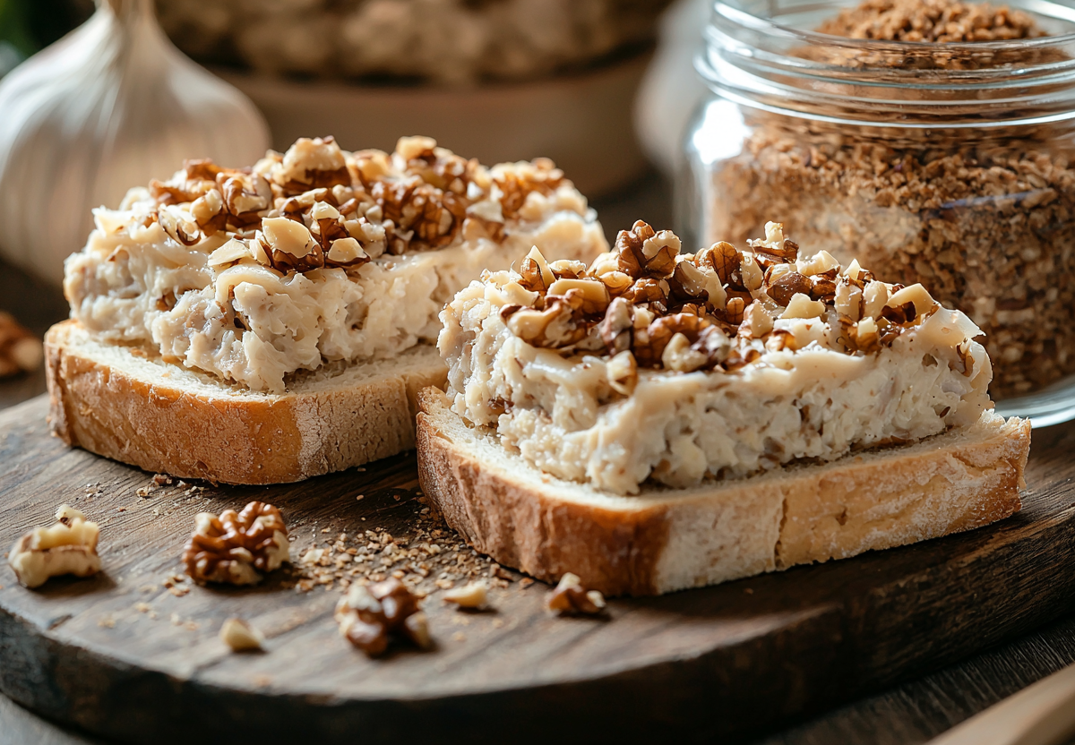 Вкус получается насыщенным и многогранным: нежная яичная основа с кремовой текстурой сливочного масла идеально сочетается с пикантными ореховыми нотками и ярким чесночным ароматом, а свежий укроп добавляет освежающую пряность.
