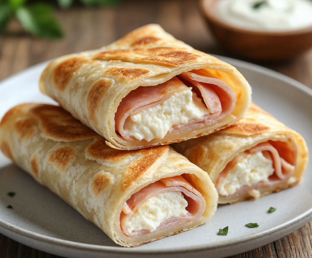 Эта закуска — идеальное решение, когда нужно быстро приготовить что-то вкусное и эффектное к приходу гостей или для семейного перекуса. Тонкий лаваш создает идеальную хрустящую оболочку, которая скрывает внутри сочную ветчину и тягучий адыгейский сыр, приобретающий при запекании нежную, плавную текстуру. Контраст между хрустящей корочкой и тающей начинкой делает это блюдо неотразимым.
