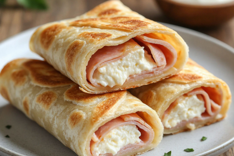 Закусочные конвертики из лаваша с ветчиной и адыгейским сыром. Хрустящие снаружи, нежные внутри