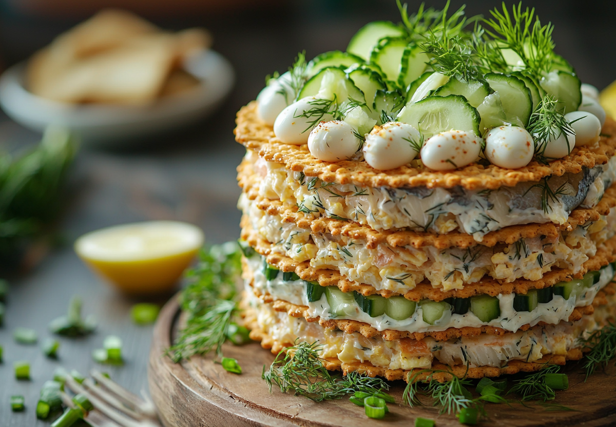 Закусочный торт из крекеров и рыбных консервов! Чудо-закуска поразит всех