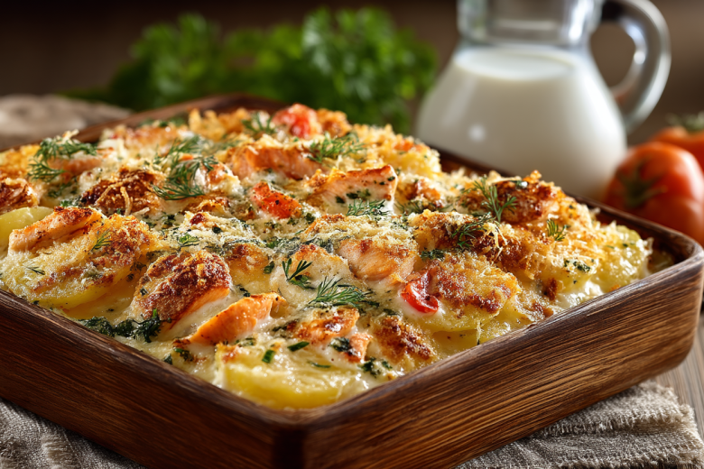 Это сытное, ароматное горячее на большую компанию готовится на одном противне и собирает всех за столом. Хрустящая картошка, сочная курица, маринованная в кефире с чесноком создают идеальную гармонию вкусов.