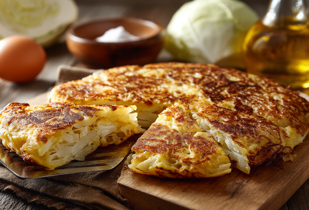 Для блюда беру белокочанную капусту — 200 г, два яйца, 2 ст. л. муки, соль и перец по вкусу, а также масло для жарки. Капусту тонко шинкую, если она жестковатая, слегка присаливаю и немного приминаю руками. Яйца отдельно взбиваю, добавляю соль и перец, затем соединяю с капустой и всыпаю муку. Массу хорошо перемешиваю до однородности. Сковороду разогреваю с маслом, выкладываю всю смесь и аккуратно разравниваю лопаткой. Жарю на среднем огне по 5–7 минут с каждой стороны до румяной корочки. Получается сытно, бюджетно и по-домашнему очень вкусно.