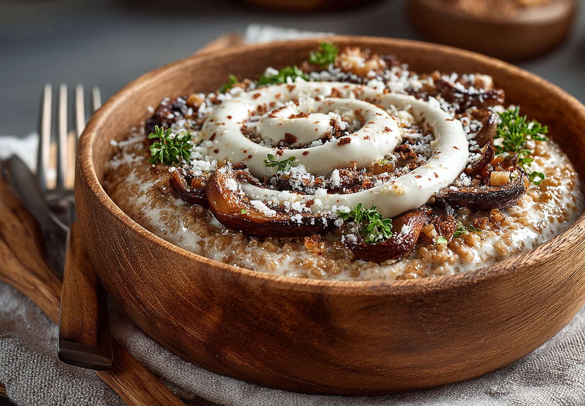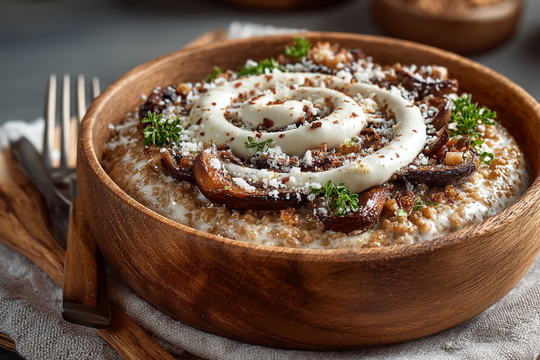 Нежная гречневая крупа, пропитанная ароматом жареных грибов и сливок, с тягучей сырной ноткой, превращает обычную кашу в настоящий кулинарный шедевр.