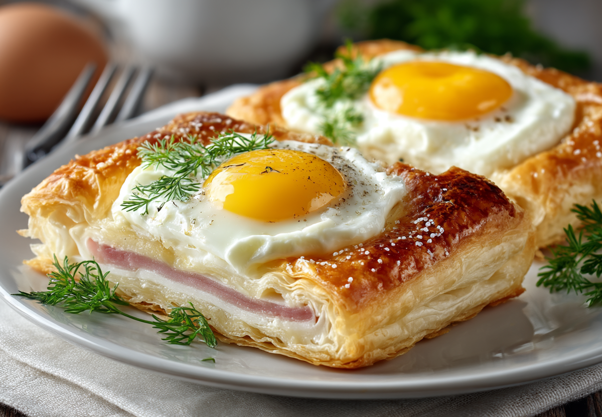 Отправьте в разогретую до 190 °C духовку на 8–10 минут, чтобы тесто подрумянилось, сыр расплавился, а желток остался жидким внутри. Подавайте сразу.
