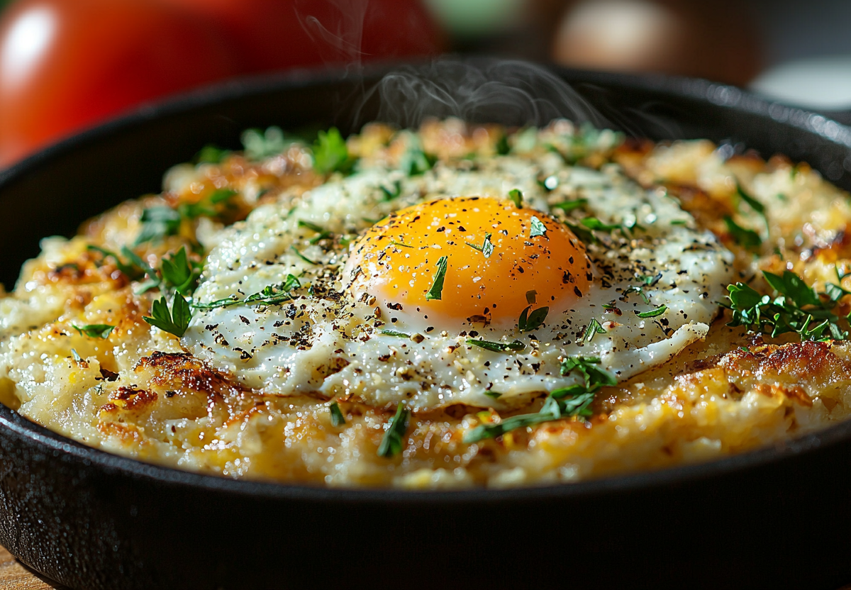 Вкус получается бесподобным: яичные белки и желтки остаются нежными, а снизу их поддерживает солоноватая, сливочная и хрустящая сырная основа.