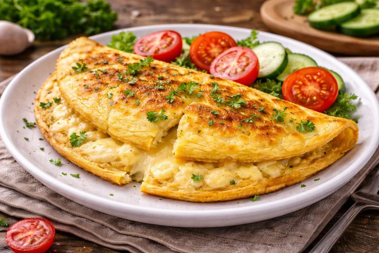 Яйца смешивают с мукой, разрыхлителем и ряженкой до однородности. Массу выливают на разогретую антипригарную сковороду, накрывают крышкой и готовят на минимальном огне. Через пару минут на одну половину выкладывают сыр, накрывают второй и держат под крышкой ещё 1–2 минуты. В итоге получается быстрый, вкусный и очень удобный вариант ПП-блюда на каждый день.