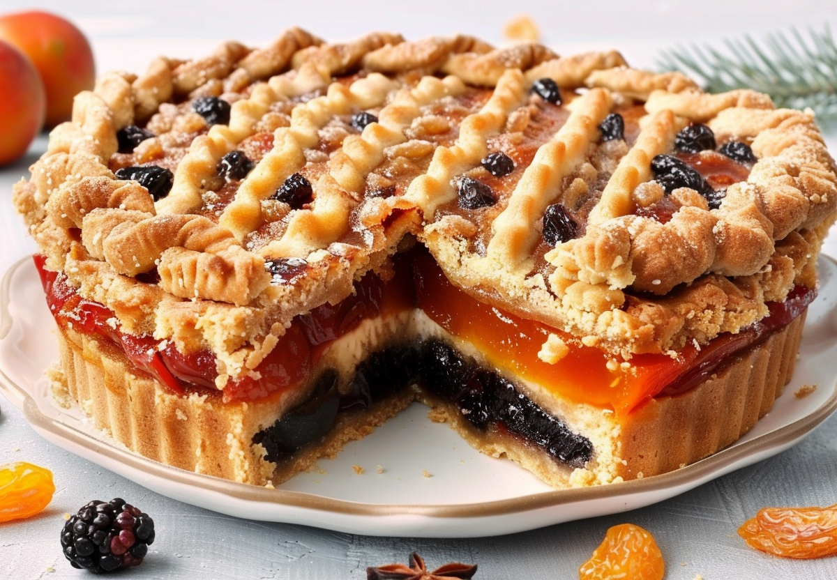 Этот пирог сочетает сладость сухофруктов, кислинку лимона и нежность теста. Традиционно его делают треугольным, но можно испечь и круглым.