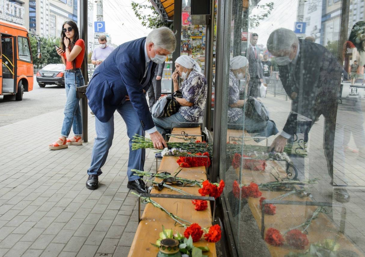 Жители Воронежа несут цветы на остановку, где накануне вечером произошёл взрыв автобуса. Также на место трагедии прибыл губернатор области Александр Гусев. Об этом сообщают «Народные Новости».