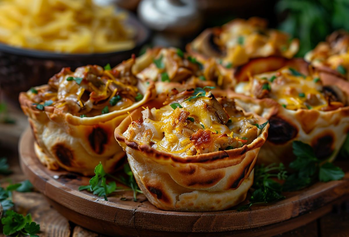 Запекайте при 200 °C около 15 минут до золотистой корочки. Подавайте горячими — такие порционные жульены выглядят эффектно и съедаются без остатка.
