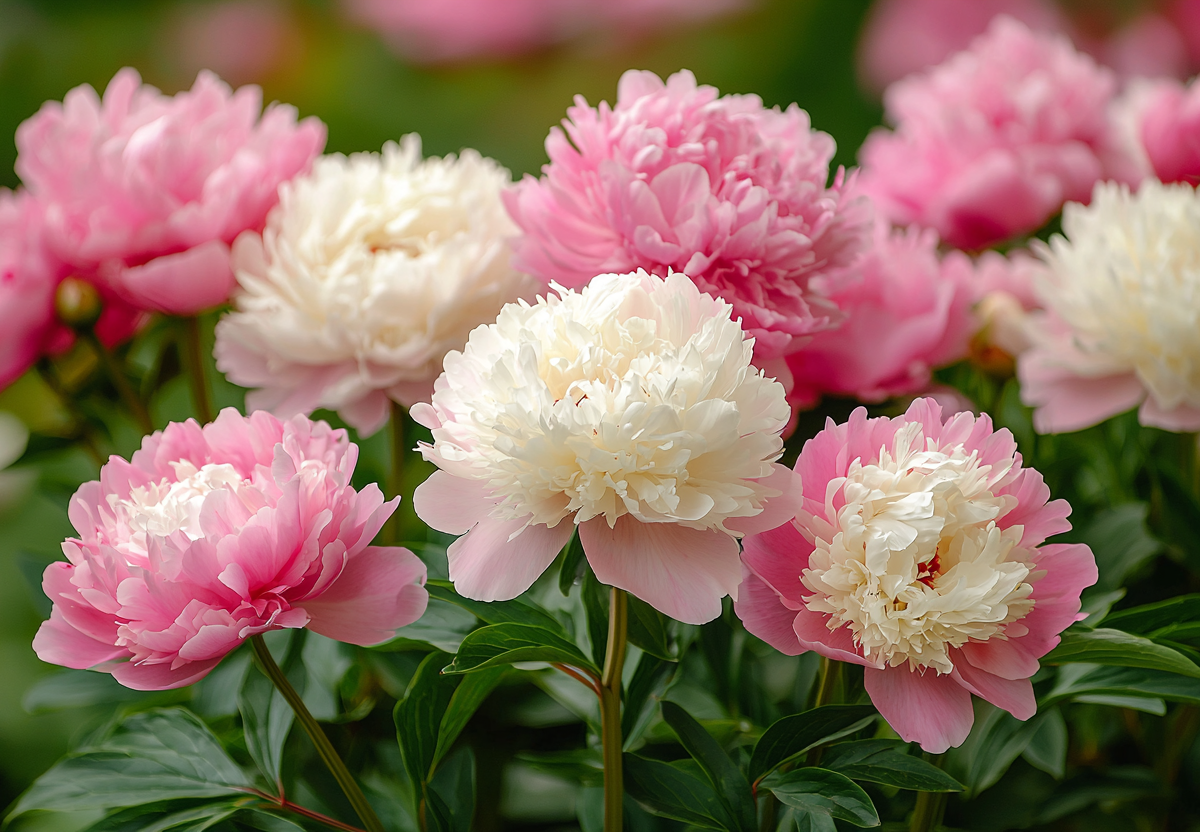 Летом пион абсолютно самостоятелен: его густая резная листва декоративна с весны до осени, а мощная корневая система позволяет ему долго обходиться без полива. При этом его цветение — это грандиозное зрелище. В начале лета куст взрывается огромными, пышными шапками цветов с бархатистыми лепестками в белых, розовых, малиновых или бордовых тонах, наполняя сад пьянящим ароматом.