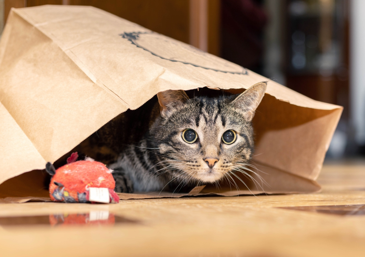 Котам очень нравятся сумки и пакеты, так как эти животные в дикой природе ищут себе укрытия для безопасного сна ночью, рассказала в беседе с aif.ru зоопсихолог и специалист по коррекции поведения кошек Татьяна Куликова. По ее словам, также пакеты шуршат, что нравится питомцам.